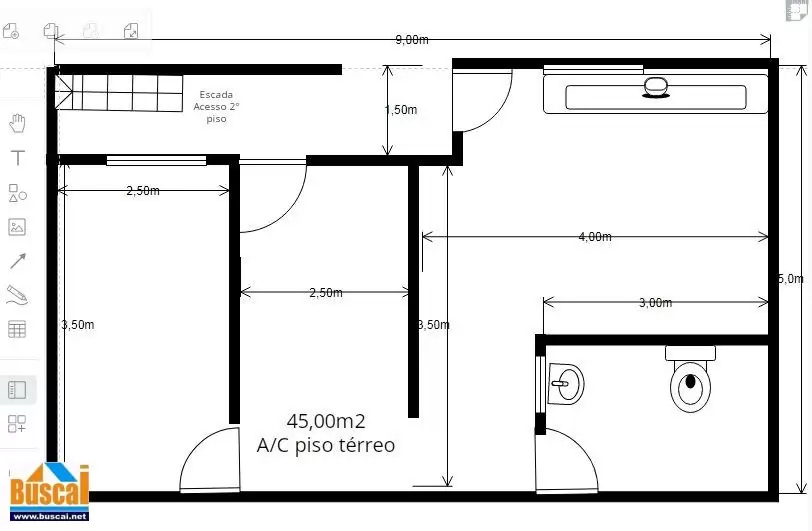45,00m2 , com 1 quarto, sala, cozinha, banheiro área de serviço.