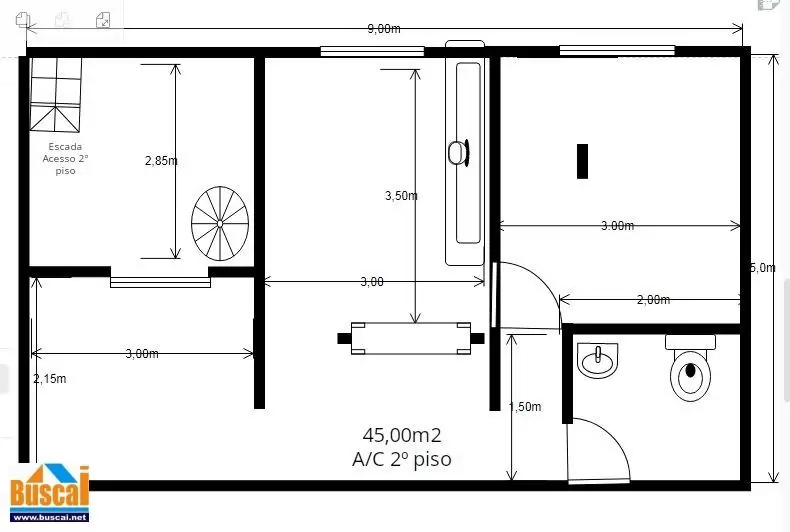 45,00m2 , com 1 quarto, sala, cozinha, banheiro, área serviço, + acesso ao terraço com escada circular. no Terraço + 45,00m2 de área coberta, ótima ventilação.